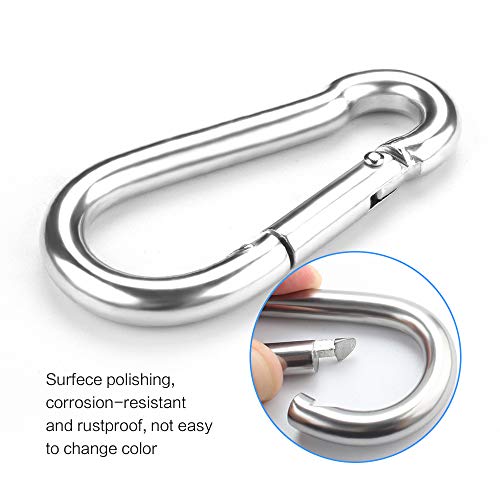 Eccellenti prestazioni di chiusura: il moschettone acciaio inox ha buone prestazioni di chiusura. Il design della fibbia a molla è molto semplice da aprire e chiudere e il design della fibbia a molla non è facile da staccare, rendendo gli oggetti fissi più sicuri.