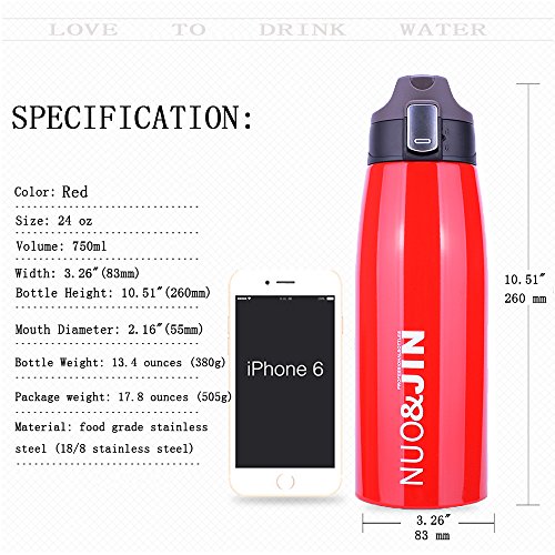 Doppia parete per mantenere il freddo e caldo - vuoto thermos - Thermos può acqua calda per 12 ore e mantenere acqua fredda per 24 ore. Puoi avere in estate ghiaccio acqua e caffè caldi in inverno con questa bottiglia d' acqua.
