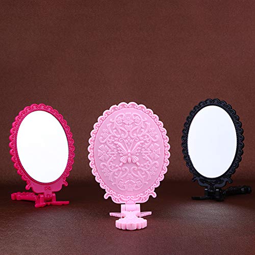 Yangshine Specchio a mano con manico pieghevole, specchio da trucco vintage compatto personale da viaggio, regalo per ragazze (nero)