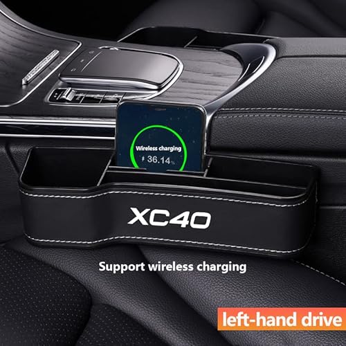 YANHAO Car Seat Gap Storage Box per Volvo S60 S90 XC40 XC60 XC90, Interni in Pelle Logo Multifunzione Organizer Accessori Auto Styling,Left hand-XC40