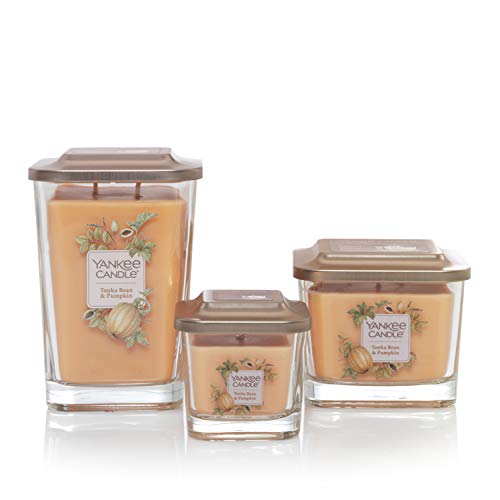 Yankee Candle Elevation Collection con Coperchio Utilizzabile come Base Candela Quadrata a 3 Stoppini, Fava Tonka e Zucca, Media