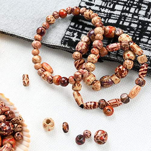 YANSHON 500 Pezzi Perline in Legno Stampate, Varie Forme Perline di Legno Sciolto con Foro, Naturale Modello Retrò Naturale Modello Retrò per la Creazione di Gioielli Collana di Braccialetti