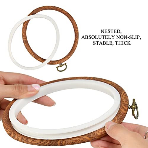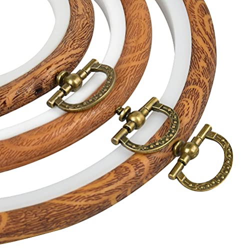 ✿ [Bello Design]- Il nostro anello da ricamo ha una pregevole fattura, una superficie liscia senza sbavature, con un design venature del legno, vintage ed elegante, c'è un anello sull'anello da ricamo, che è comodo da appendere ed è la scelta ideale per il ricamo.