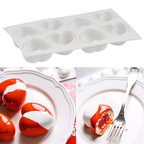 YANSHON Stampi in silicone per cioccolatini, Stampo per Torta a Forma di Cuore in Silicone con 8 Cavità, Mousse di Gelatina di Budino Stampo in Silicone per Pane Stampo per Utensili da Forno