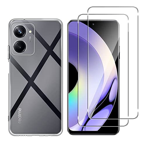 Yanwom [1+ 2 Pezzi Compatibile con Realme 10 Pro Cover + Vetro Temperato Pellicola, Trasparente Antiurto Custodia Sottile Silicone TPU Case, 9H Durezza Anti Graffio Pellicola Protettiva