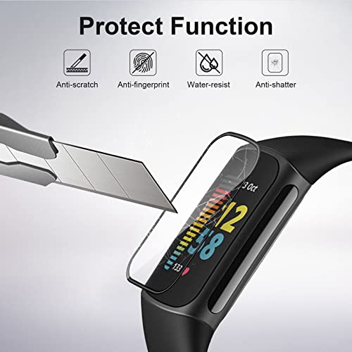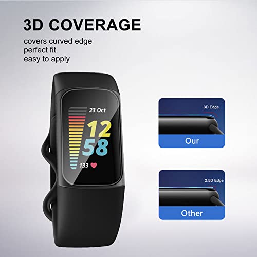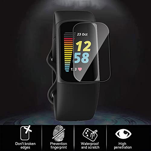 Yanwom [3 Pezzi Pellicola Protettiva per Fitbit Charge 5 Pellicola Protettiva Accessori, Anti-Graffio, Bubble-Free, 3D Soft TPU Protezione Schermo Facile da Installare HD Clear Film - Nero