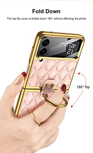 Yanzi Compatibile con Samsung Galaxy Z Flip 4-5G Cover(Viola)+9H Vetro Temperato[Ring]-[Supporto]-[Antiurto] Pieghevole Pelle Premium Protezione Custodia per Galaxy Z Flip 4-2022