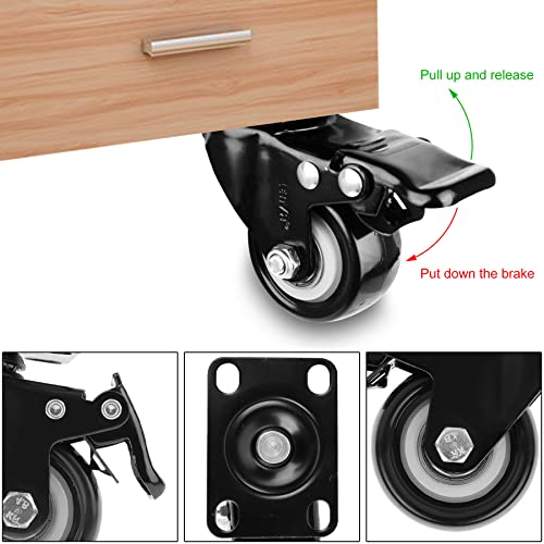 YAOBLUESEA 4 ruote girevoli per il trasporto, ruote girevoli per mobili, silenziose, con 360° PU e viti, portata totale 200 kg, 2 ruote girevoli e 2 ruote freno da 50 mm