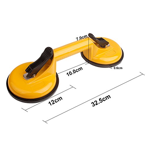 ♚♚Materiale: lega di alluminio, gomma, doppia ventosa in vetro, ventosa di diametro 120 mm, verticale: 80 kg, orizzontale: 100 kg, gialla, con impugnatura antiscivolo.