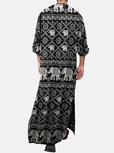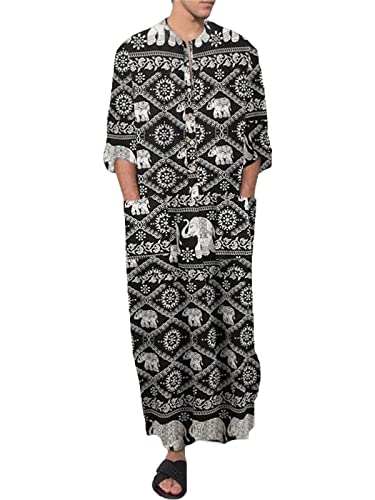 YAODAMAI Abito da Uomo Musulmano Arabo Casual Allentato Oracle Etnico Stampato Lungo Accappatoio Camicia da Notte