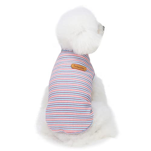 YAODHAOD Camicia a righe estiva in cotone senza maniche, maglietta per animali domestici, morbida, gilet di base per cani di piccola taglia media (rosa S)