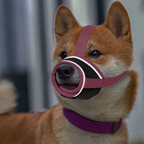 YAODHAOD Museruola per cani, in nylon super morbido impedisce di mordere e masticare, con strisce riflettenti, museruola regolabile traspirante per cani (rosa (riflettente), L)