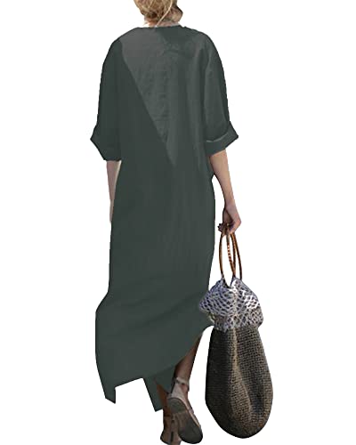 YAOHUOLE Caftano da donna lungo musulmano caftano a maniche lunghe caftano da donna islamica robes cotone laterale spaccato caftano donna, grigio scuro, S