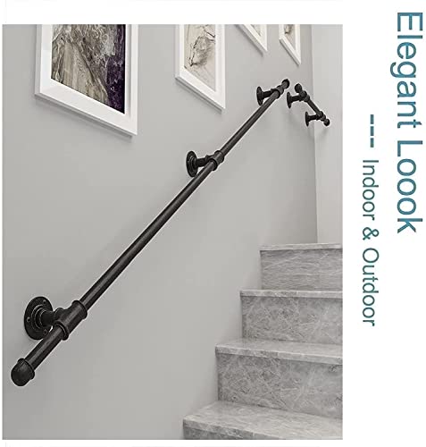 YAOJIA passamano per Scale Esterne Corrimano per Esterni in Ferro Battuto in Metallo Nero, Supporto A Parete per Ringhiere A Soppalco per Scale per Bambini Anziani per Interni Ed Esterni