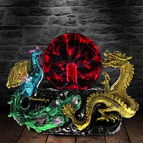 YAOJIA Luce della Sfera al Plasma Palla al Plasma Antico Statua del Drago e della Fenice Lampada di Vetro Illuminazione Horror Decorazione della casa novità Lampada da Tavolo Regali Fatti a Mano
