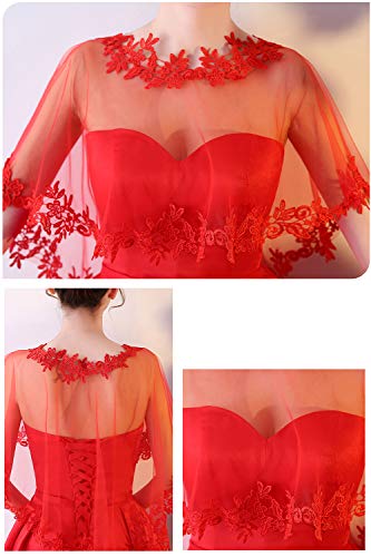 YAOMEI Donna Sciarpa Stole Scialli, Pizzo Ricamo Scialle per il tempo libero e il commercio nuziale bridemaids Abiti da sera partito (Rosso)