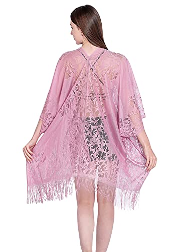 YAOMEI Donna Sciarpa Stole Scialli, Pizzo vuoto Estate Scialle per il tempo libero e il commercio nuziale bridemaids Abiti da sera partito (Onesize, A-Rose)