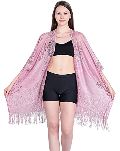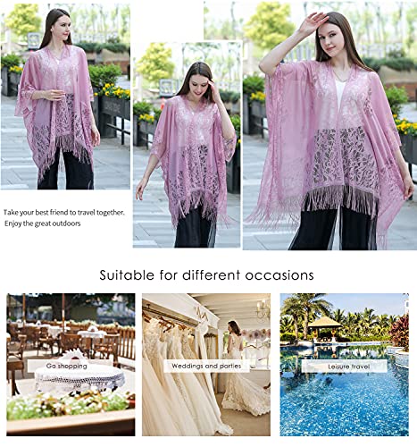 ❤ Design unico: ★ Modello di pizzo vuoto sullo scialle, ★ Nappe di pizzo vuote. Il poliestere crea un look elegante e sfarzoso - Tessuto delicato e leggero, perfetto per matrimoni, crociere, eventi serali ed eventi speciali. Mostra i tuoi sentimenti romantici.