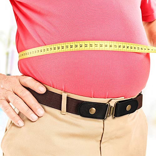 Yaomiao 2 Pezzi Cintura Elastica Nera e Marrone (Senza Fibbia) con Chiusura a Scatto in Ottone e un Paio di Fibbia in Ottone Marrone (Uomo 64 CM)