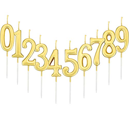 Yaomiao 10 Pezzi Compleanno Numerale Candele Torta Numerale Candele Numero 0-9 Glitter Torta Topper Decorazione per Bomboniera Festa di Compleanno (Oro)