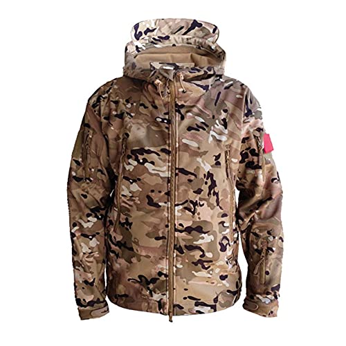 YAOTT Antivento Impermeabile Giacche da Sci Tattico Softshell in Pile Giacca Mimetica Militare con Cappuccio Campeggio d'escursione Esterno Caldo del Rivestimento Cappotto camuffare XL