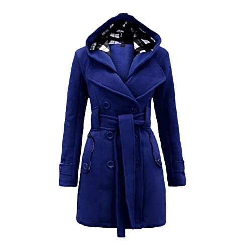 YAOTT Cappotto Donna Vento Giubbotto Manica Lunga Con Cappuccio Casual Trench Lungo Invernale Caldo Casual Oversize Giacca Medio Lungo Parka Con Cintura,Blu,S