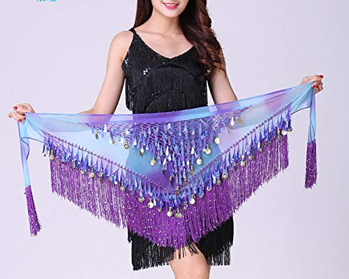 YAOTT Donna Cintura in Chiffon per Danza del ventre con paillettes e monete Hip Gonna Wrap Costume Orientale Viola Blu Taglia unica
