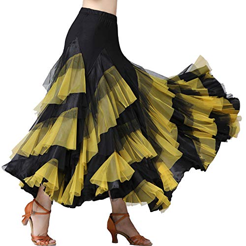 YAOTT Donna Danza Latino Gonna Lunga Flamenco Concorso di Tango Gonne di Danza Moderna Performance Elegante Giallo Taglia Unica