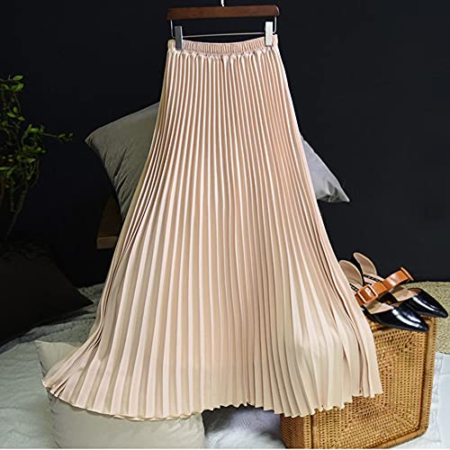 YAOTT Donna Tinta Unita Vita Elastica Alta Maxi Gonna Plissettata Lunga in Chiffon Estate Boho Beach Gonna a Trapezio Plus Size Albicocca M