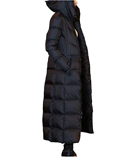 YAOTT Piumino Lungo Ispessito con Cappuccio da Donna Giacche Piumino Parka Cappotto Elegante Invernale Giubbini Imbottito Piuma Cappuccio Nero L