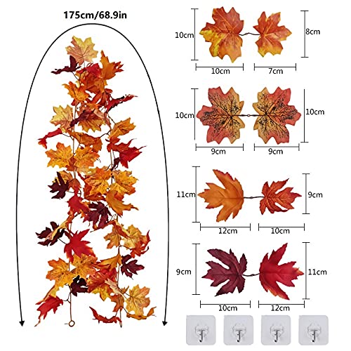 Kit ghirlanda di foglie d'acero: la confezione include 2 pezzi di ghirlanda di foglie d'acero, 4 ganci;