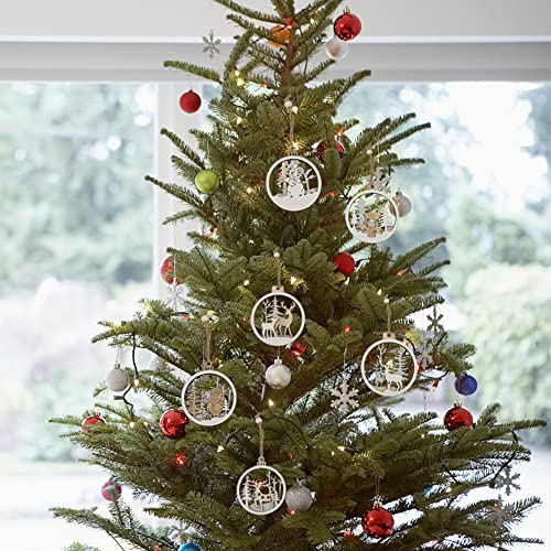 YapitHome 6 Pezzi Decorazioni Natalizie Legno Pendenti Legno Natalizi Addobbi Albero Pendente Ornamenti di Albero 3D per Albero di Natale,Decorazioni per Feste,Appendere Finestre Pareti