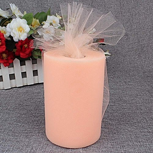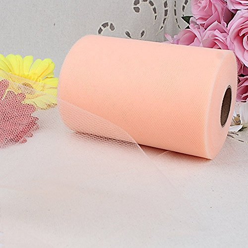 Paor 100 Yards 15cm Wide Tulle Tessuto a Nastro per la Decorazione del Partito Wraping Craft Bow Girl Tutu Colore Verde Scuro/Rosa / Giallo Limone/Blu Scuro/Bianco (Peach)
