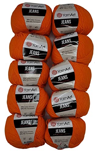 YarnArt - Gomitolo di lana da 50 g, tinta unita con 55% cotone, 500 g, colore arancione 77
