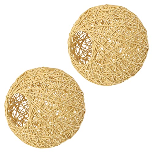 YARNOW Illuminazione a Sospensione del Soffitto in Rattan: Tessuto Intrecciata Intrecciata Lampada a Sospensione a Sfera di Vimini 2Pcs Appeso a Soffitto Lampada da Soffitto Ombra