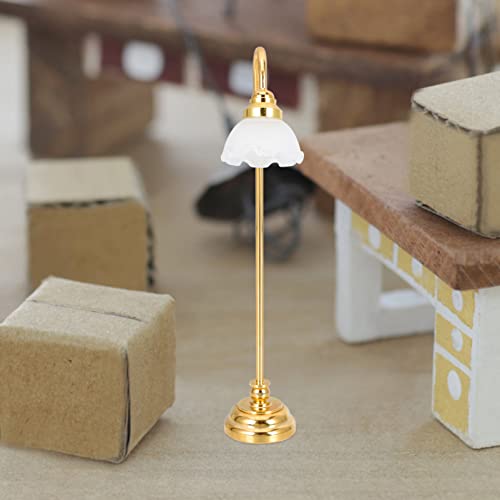 YARNOW Lampada da terra in miniatura 1: 12 mobili per bambole, luci a LED, alimentate a batteria, modello per accessori per la decorazione della camera delle bambole, dorate