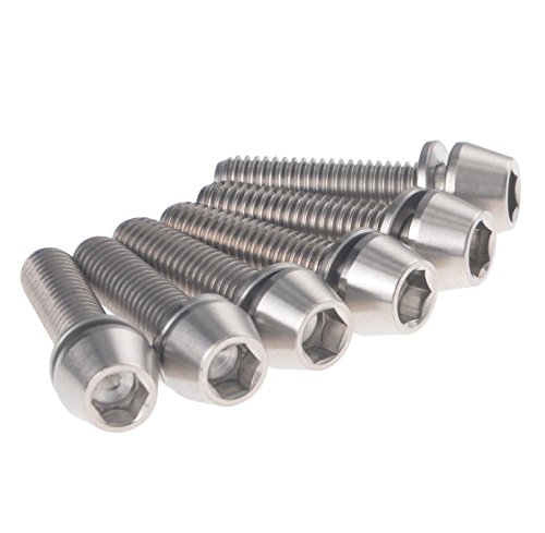 Yaruijia Bullone in titanio M5 x 16 mm, M5 x 18 mm, M5 x 20 mm, a testa conica, con rondella Ti per attacco manubrio bicicletta, confezione da 6 (titanio, M5 x 16 mm)