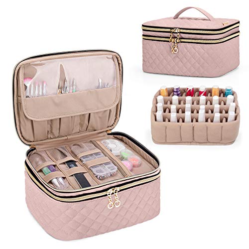 Yarwo Borsa da Viaggio a Doppio Strato per Smalti per Unghie, Smalti per Unghie Organizzatore Può Contenere fino a 24 Bottiglie di Smalto per Unghie (15 ml) e Altri Accessori, Beige Rosa(SOLO BORSA)