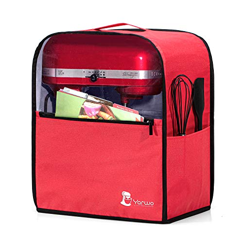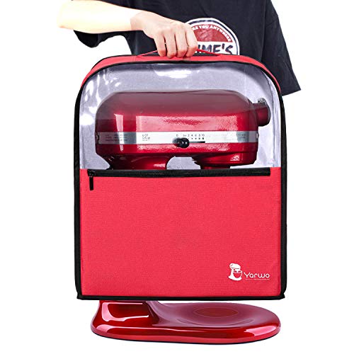 Yarwo Visibile Copertura per Robot da Cucina, con Tasche, Copertura Antipolvere per Impastatrice Planetaria,per Tutti i KitchenAid Robot da Cucina da 5,7L e 7,6L, Rosso