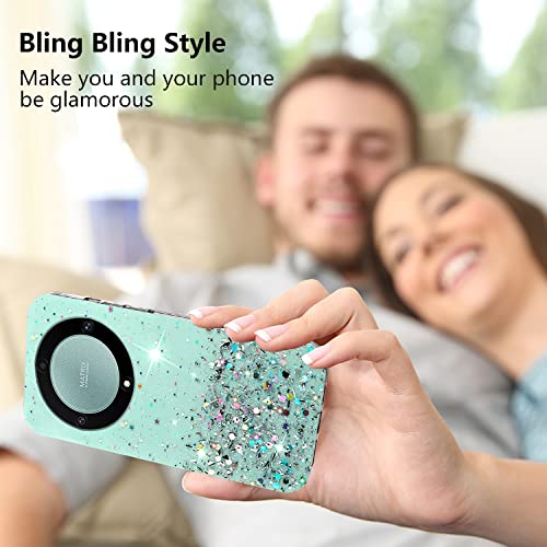 Yarxiawin Compatibile con Cover Honor Magic 5 Lite Trasparente Brillantini, Custodia Honor Magic 5 Lite Cover Glitter Silicone Sottile Case Morbida Rosa (Verde)