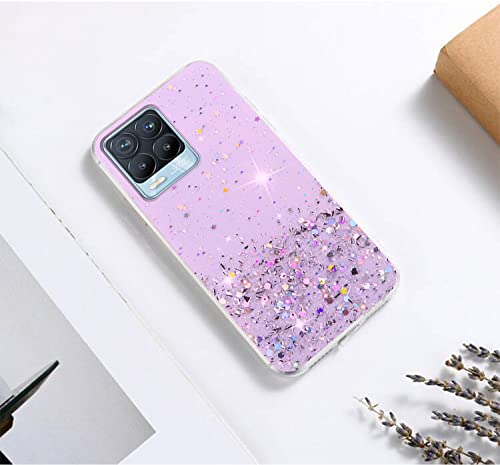Yarxiawin Compatibile con Cover Realme 8 5G Trasparente Brillantini, Custodia Realme 8 5G Cover Glitter Silicone Sottile Case Morbida Rosa (Viola)