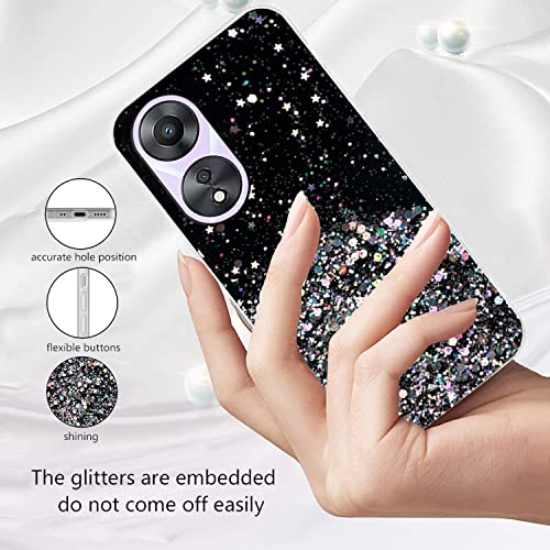 Yarxiawin Compatibile con Cover OPPO A78 5G Trasparente Glitter Brillantini Bling Bling Custodia OPPO A78 5G Cover Silicone Morbida Sottile OPPO A58 Case Rosa Lusso Lucido (Nero)
