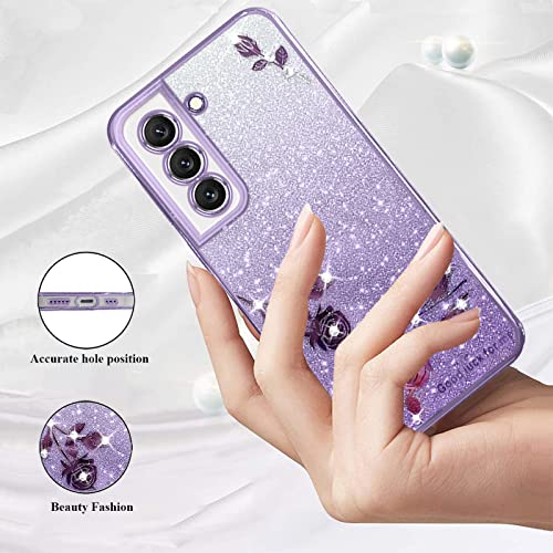 Yarxiawin Per Cover Samsung S21 FE 5G Glitter Silicone Fiore, Custodia Samsung S21 FE Cover Trasparente Brillantini Lusso Lucido 2 in 1 Case Sottile Viola (Viola)