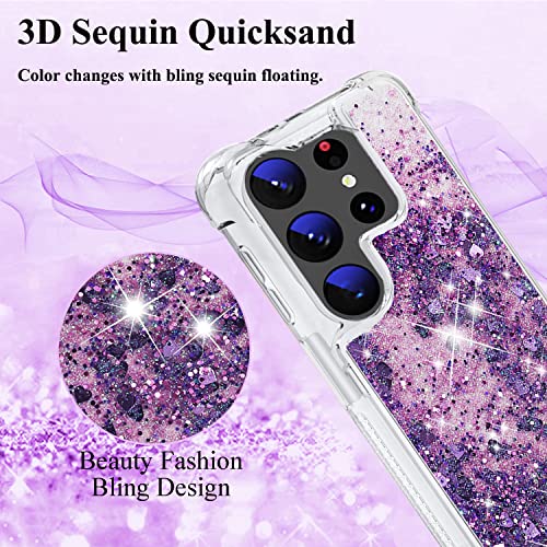 Yarxiawin Per Cover Samsung S23 Ultra Glitter Silicone Gold, Custodia Samsung S23 Ultra Cover Trasparente Brillantini Lusso Lucido Case Paraurti Antigraffio (Viola)