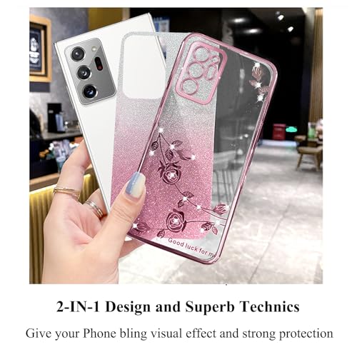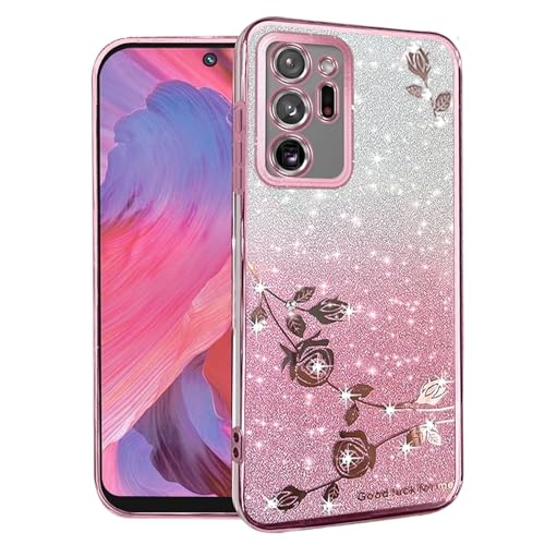 Yarxiawin Per Cover Samsung Note 20 Ultra 5g Glitter Silicone Fiore, Custodia Samsung Note 20 Ultra Cover Trasparente Brillantini Lusso Lucido 2 in 1 Case Sottile Viola (Rosa)