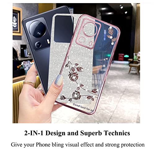 [Resistente agli urti e alle cadute] Il materiale TPU flessibile posteriore mantengono il dispositivo resistente agli urti. La cover Xiaomi 13 Lite glitter protegge efficacemente il telefono da cadute e urti.