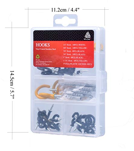 Yasirona TANGDIAABBCC 90's Club?, 56 pcs, Cup Hooks, Screw in Hooks, Vinyl Coated, Great for Indoor & Outdoor Hanging Use with Free Plastic Anchors