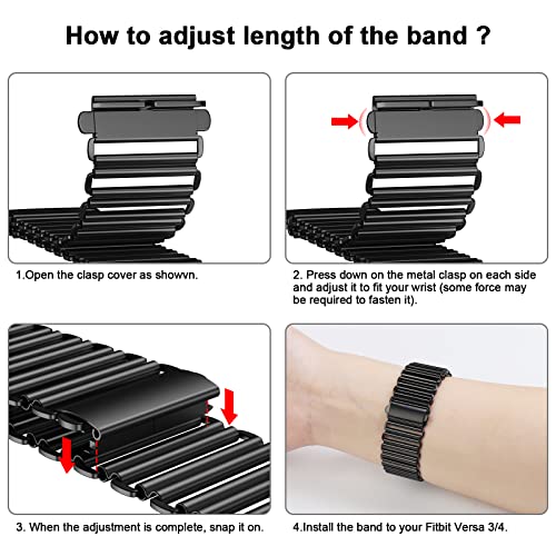 ✔Modelli compatibili: questo bracciale di ricambio in metallo è perfettamente compatibile con lo smartwatch Fitbit Versa 4/Fitbit Versa 3/Fitbit Sense 2/Fitbit Sense (versione 2020). Nota: l'orologio non è incluso.