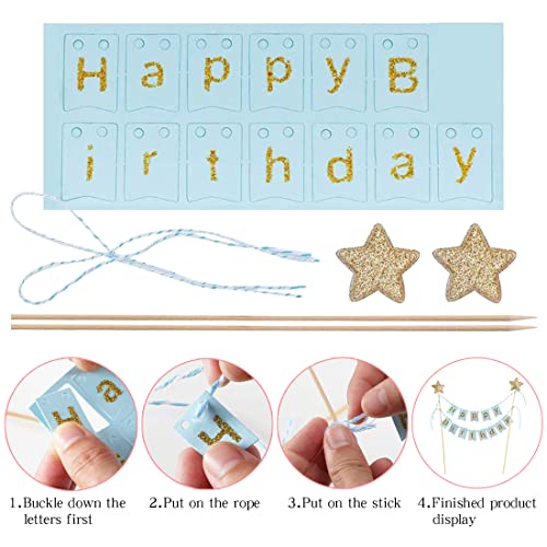 ★ Kit di decorazioni per torte: ★ La confezione include 1 banner rosa per torta di buon compleanno, 1 banner blu per torta di compleanno, 4 stelle dorate, 4 bastoncini di legno, 4 corde, 4 punti di colla. Sono adatti per la maggior parte delle torte.