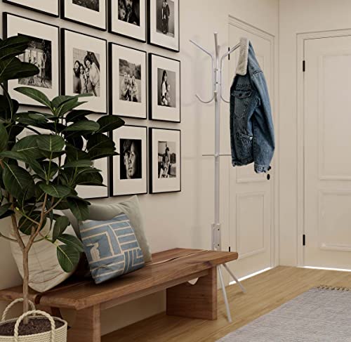 YASTA Appendiabiti Da Terra Attaccapanni Piantana Moderno Bianco Metallo 12Ganci 170cm